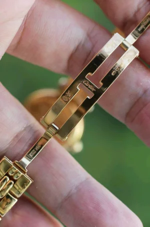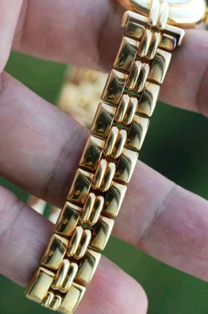 Cartier, Colisee watch, rare gold band style, single watch, the entire watch is made of 18k gold, 24mm in diameter, approximately 170mm around the wrist, the links are detachable and adjustable, good price.