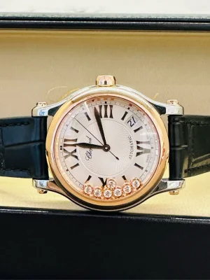 Chopard ,Happy Sport , Model 278559-6001, automatic winding mechanical movement, 18K rose gold and stainless steel 36,2021 complete set