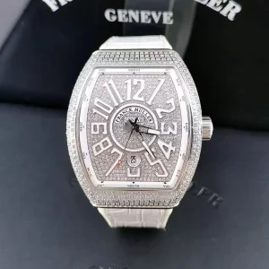 Complete set, Franck Muller, model: V45, Starry Sky (diamonds in the aftermarket), automatic mechanical men's wristwatch, 45mm in diameter, made of stainless steel, high appearance level full diamond white dial, rare barrel-shaped wristwatch, comfortable to wear.
