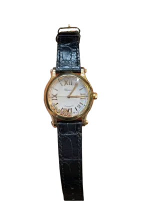 Chopard, model: 274808-5008, classic happy diamond (seven diamonds) series, automatic mechanical women's watch, diameter 36mm, the whole watch 18K rose gold, blue jewel mirror between 7 will be active super flash diamonds, Chopin's most popular。