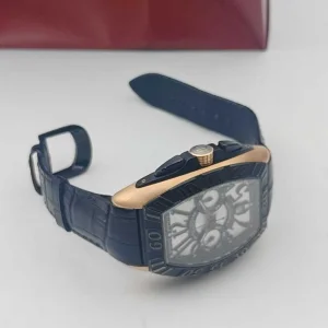 Franck Muller, 9900 CC GP, men's automatic mechanical watch, made of 18K rose gold and black titanium materials, with a maximum gauge diameter of 48 × 62.7mm including lugs, a power reserve of 42 hours, waterproof depth of 100 meters, black and white dial, with timing and calendar function, dual gold head design, left head press adjustable calendar, three-dimensional pattern dial, rare timing model
