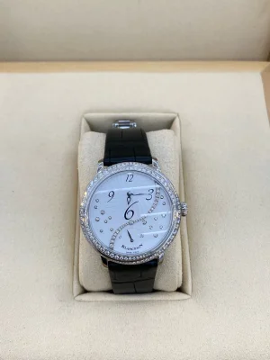 Blancpain, Ladybird, model: 3650A-4528-55B, automatic mechanical women's watch, diameter 36.8mm, original diamond-encrusted bezel, diamond embellishment on the dial, 30-second retrograde function, 18k gold flower automatic rotor, complete set.