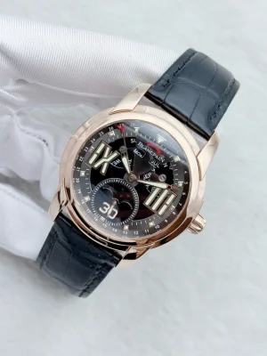 BLANCPAIN, model: 8866-3630-53B, black dial , case diameter 43.5mm, 18K rose gold material, black face, date display, week display, moon phase display, power reserve, transparent back, folding clasp design