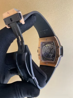 HUBLOT, Big Bang Soul Series, Wang Jin Men's Watch, Model: 601.OX.0183.LR, automatic mechanical movement, known as Little Richard Miller,45MM diameter, hollow design, 18K rose gold case buckle, timing function calendar display.
