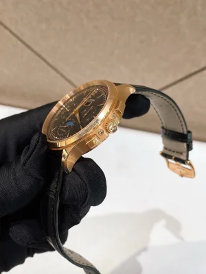Jaeger-LeCoultre, Master Series, Model: Q413257J. Men's automatic mechanical wristwatch. 18k rose gold material. 40mm diameter. With stopwatch function, date display, week display, month display and moon phase display.