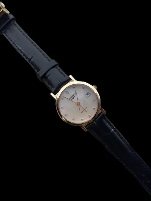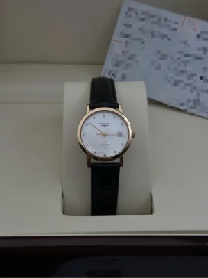 Longines, Boya Series, Model: L4.378.8.87.0, 18K rose gold material, automatic mechanical ladies' wristwatch, 27.2mm diameter, mother-of-pearl face with diamond hour markers and date display, elegant and exquisite to wear, complete set.