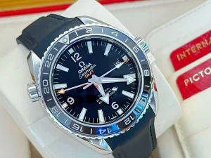Omega, Seamaster series, model: 232.32.44.22.01.001, new ceramic bezel, GMT dual time zone, black dial, AT8605 bi-axial movement.
