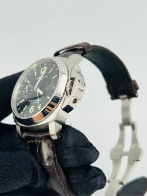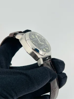 Panerai, PAM 00244,LUMINOR series, automatic machinery, 40MM diameter, date display, dual time zone function, fine steel, men's watch! Classic black dial with luminous dial hands, patented bridge crown, 300 meters waterproof, folding buckle ~
