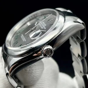 Rolex, Log series, model: m126200-0018, case diameter: 36mm, grey dial with green Roman numerals and hour markers commonly known as "green lotus", classic large three-hand display with calendar function, equipped with the new 3235 movement, suitable for daily commuting and comfortable to wear and fit.