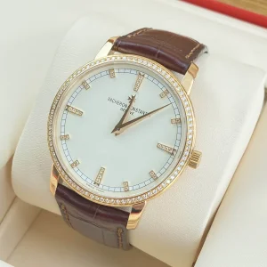 Vacheron Constantin, Heritage Collection, Men's, Manual Mechanical Watch, Model: 81572/000R-9431, 38mm diameter, White dial, Diamond hour markers, 18K rose gold case, Band originally set with diamonds