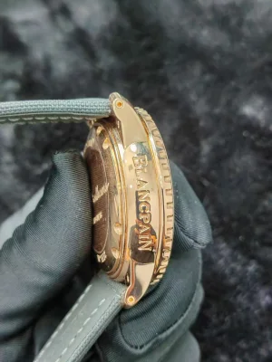 Complete set, Blancpain, Fifty Fathoms series, 5015-3630-52A, men's automatic mechanical watch popular all gold watch, diameter 45mm, power reserve of 120 hours, black dial, dense bottom movement, with needle buckle, made of rose gold material, date display