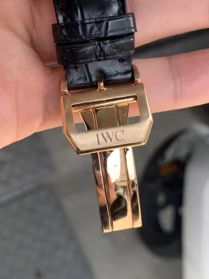 IWC, Men's Watch, Portugal Series, Model: IW502213, Perpetual calendar function, 18K rose gold material, 42.3mm diameter, week, date, year, moon phase, dynamic storage display, large folding buckle, transparent bottom. Automatic machinery.