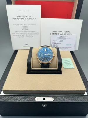 IWC, Portugal series, model: IW503312, second-hand, complete set, diameter 44.2mm, using 52610 movement, dynamic storage 168 hours, waterproof 30 meters, with date, week, month, perpetual calendar, moon phase power reserve display function, 18k gold case watch