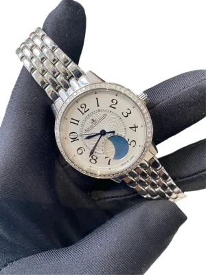 Jaeger LeCoultre, Date Series, Model: 3578120, automatic mechanical, stainless steel, case diameter: 34mm.