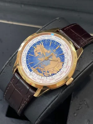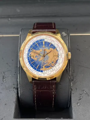 Jaeger-lecoultre, Geophysical Observatory series, Model: Q8102520, automatic mechanical men's watch, 42mm case diameter, World Chart dial, World time, overall 18k rose gold material, new 18K gold automatic rotor, complete set.