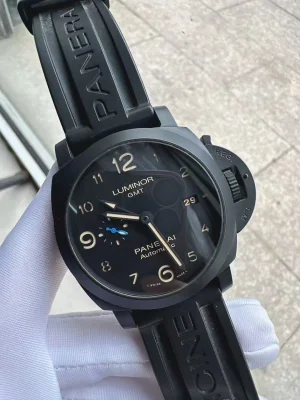 Panerai, Luminor GMT ,PAM01441, 44mm diameter, black ceramic case, sandwich dial with blue hands, GMT dual time+date display, 72 hour dynamic storage