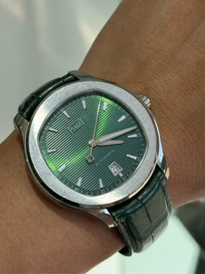 Count's Polo watch series, model G0A44001, automatic mechanical, 42mm diameter, date display, made of precision steel material, folding buckle, green dial, back transparent, 100 meter waterproof, 2020 complete set of accessories