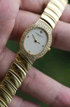 Vacheron Constantin, 18K gold, original diamond setting, quartz movement, approximately 160mm wrist circumference, detachable links for length adjustment, good price.