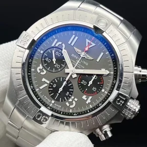 Breitling, Avator series, Model: AB01821A1B1A1, 45mm in diameter, dark grey dial, three-eye chronograph design, rotatable ratchet bezel, water-resistant to 300 meters with sharp luminous effect, equipped with a self-produced b01 movement that is transparent on the back, high cost performance at the same price range, full set