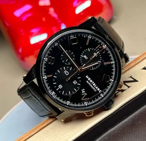 Montblanc, Time Walker Series, Rose gold, Darth Vadar, Automatic machinery, back transparent movement, diameter 43 mm, classic black disc gold needle, 18k rose gold button, ceramic crown, black DLC coated steel case, date display, timing function, very high cost performance, Model: U0105805