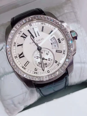 Cartier, CALIBRE DE CARTIER, model: WF100003, automatic machine, 18k white gold diamond, diameter: 42 mm.