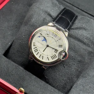 Full set, Cartier, Blue Balloon collection, Model: WSBB0020 Automatic, neutral watch, 37mm diameter, steel case strap, Sun print dial sword steel blue hands.