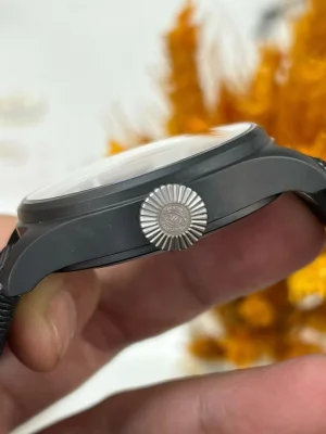 IWC,Pilot series, model: IW329801, the new big fly black ceramic TOPGUN Naval air combat forces, the whole table is made of black ceramic + titanium metal lightweight wear-resistant, diameter: 43.8mm, black dial, digital scale is clear and easy to read, luminous indication, titanium head, equipped with a new self-produced 82100 automatic winding movement, titanium bottom cover engraved TOPGUN logo, quick removal of sports strap, folding buckle.