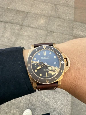 Panerai, the most classic bronze watch, model PAM00968, diameter: 47mm, automatic machinery, 3 days mobile storage, 99 new, a full set with national bank invoice, two original straps