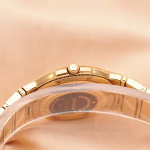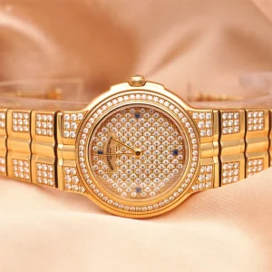 Vacheron Constantin, quartz watch for women; 18K gold/original diamond; 28.5mm diameter, full star diamond face plate, close bottom, folding buckle; 98 new color, single watch, good quality.