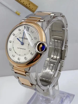 Cartier, Blue Balloon series, Model: W3BB0013, Automatic mechanical watch for women, 36mm diameter, 18 rose gold/fine steel, engraved time mark.