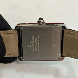complete set, Cartier, Tank, WSTA0030, quartz, stainless steel, 31 x 24.4 millimeters.