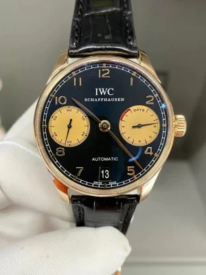 IWC Portuguese IW500121 , Automatic mechanism, rose gold, 42mm, folding buckle, 7 days power reserve display, single watch, good price.