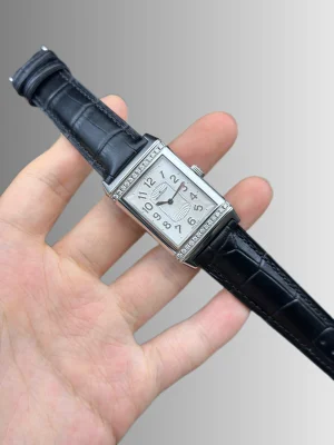 Jaeger-lecoultre, Reverso Series, Model: Q3208421, ladies' watch, 98 new condition, 40×24mm dial, manual mechanical, stainless steel with original diamond setting.