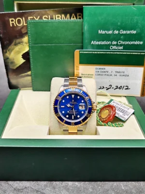 Rolex, Model: 16613lb, Gold, Blue Water Ghost, V-head, set, Stock full film unused supplies, 40mm diameter, out of print, collectible.