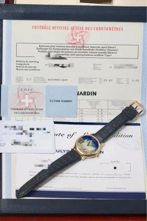 Ulysse Nardin, St. Peter's Basilica in Rome, Model: 131-77-9/RO, limited edition of 35 pieces, rare full set on the market, the dial is painted with St. Peter's Basilica in Rome (SAN PIETRO ROMA), combined with the blue starry sky background, with a strong artistic style and superb craftsmanship. 37mm diameter, ultra-thin automatic mechanical watch, original products are all original buckle belt.