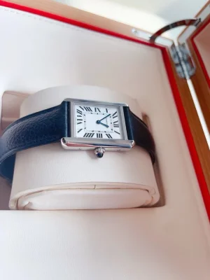 Cartier tank series, WSTA0030 model, quartz material, complete set with box and certificate, made of high-quality steel material, with a diameter of 31 x 24.4mm, high-end and handsome, good price