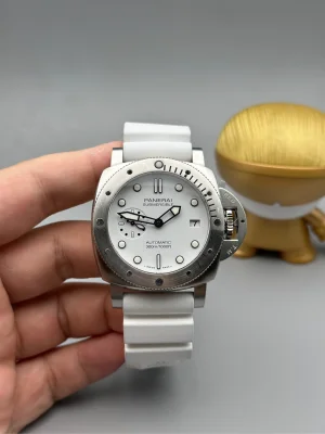 Panerai, submersible series, PAM01223 model, Snow mountain white dial, diameter 42 mm, using Cal.P.9000 movement, watch dynamic storage 72 hours, date display, waterproof 300 meters, a full set of boxes have certificates.
