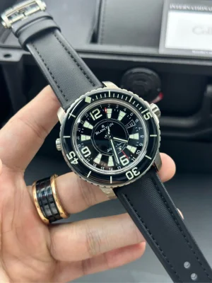 Blancpain, Fifty Fathoms, Model: 50021-12B30-52B, commonly known as deep water bomb, the grandfather of diving watches, 48mm large diameter, the history of super luminous, 1000 meters waterproof, 120 hours of power storage, helium exhaust so that it is fearless of deep sea challenges, titanium alloy case, three-dimensional time scale, clear and easy to read three needle indication, sapphire luminous bezel, transparent automatic mechanical movement, Propeller automatic Tuo, glow-in extremely sharp, comfortable waterproof nylon strap, folding buckle, limited to 500 in the world, overbearing and powerful。