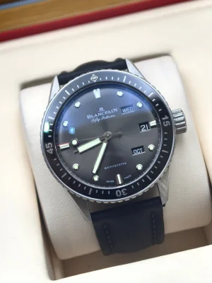 Blancpain, Fifty Fathoms series, model: 5071-1110-B52A, automatic machinery, men's watch, less complex functions of the annual calendar Fifty Fathoms, three Windows on the right side, showing the week, month, calendar, extremely low-key.