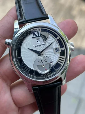 Chopard, LUC series, model 161912, large self ringing wristwatch, single watch, 40.5mm diameter, 18K white gold material, 1-point self ringing device, hourly spring timing, date display, transparent automatic mechanical~.