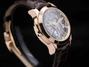 Jaeger-LeCoultre, Hybris Mechanica excellent watchmaking process series, "Crystal Sound spring" three question watch, model: Q1642450, the overall luxury Au750 rose gold, equipped with self-produced cal.947 ultra-high-end three question crystal sound spring hollow movement, mechanical sense of exquisite design at a look.