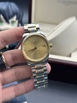 Longines, watchmaking traditional master series, Model: L2.518.5.37.7, men's automatic machine, 36 mm diameter, Champagne dial, 18k gold, full length section