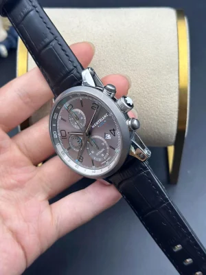 Montblanc, Time Traveler series, Model: U0107339, men's mechanical watch, 43mm in diameter, GMT version with a grey bezel and grey dial, exquisitely crafted.