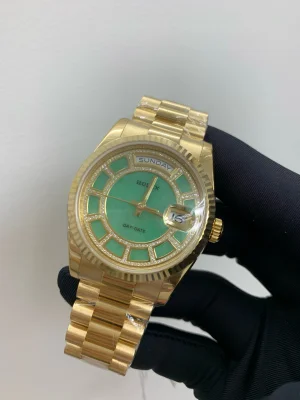Rolex, Model: 118238, green jade jade top, original diamond, K gold.