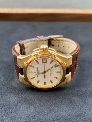 Vacheron Constantin,Overseas series, Model: 42042, men's automatic mechanical watch, the early generation of four corners, Malta cross bezel, 18k gold case + buckle, diameter 37mm, full of feelings.