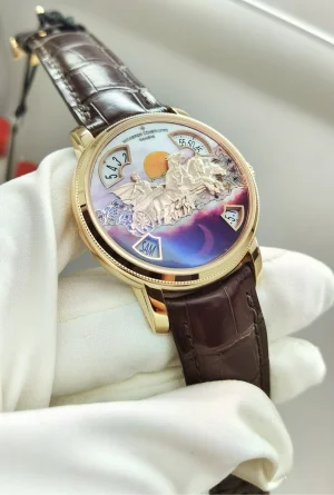 Vacheron Constantin, 250th anniversary model: 86010, Metiers d 'Art Four Seasons watch.Limited to 12 sets, each set a total of spring, summer, autumn and winter four styles. On the 18K gold dial, different decorative colors are selected according to the characteristics of the four seasons, and a variety of advanced decorative techniques such as fine carving, jewelry inlaying and enamel painting are set.