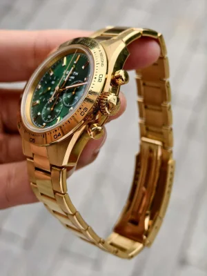 Zenith, Yellow gold, green face, chronograph, backlit mechanical watch 30.3100.3600/56.M3100.