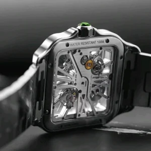 Cartier, Sandoz series, Model: WHSA0028, fine steel, 39.8mm diameter, hollow manual mechanical watch, green scale, new unmade supplies.