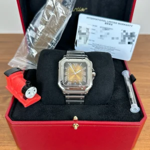 Cartier Santos series, model: WSSA0064, large, automatic mechanical men's watch, 39.8mm diameter, high-end gradient smoked yellow dial, double quick-release folding buckle strap, complete set.