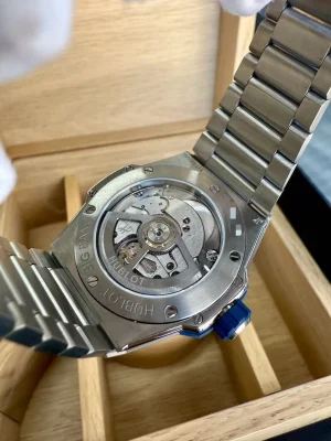 Hublot, Big Bang, model: 457.NX.7170.NX, Blue dial, 38mm dial, titanium material, Arabic numeral hour markers, transparent back movement, automatic mechanical, complete set.